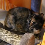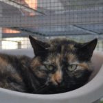 Halloween est arrivée au refuge après avoir été retiré d'un bungalow où 27 chats vivaient. Cette minette n'a plus de dents et doit donc manger seulement de la nourriture humide. C'est une minette qui n'est pas sociable, ses adoptants devront être patients avec elle.