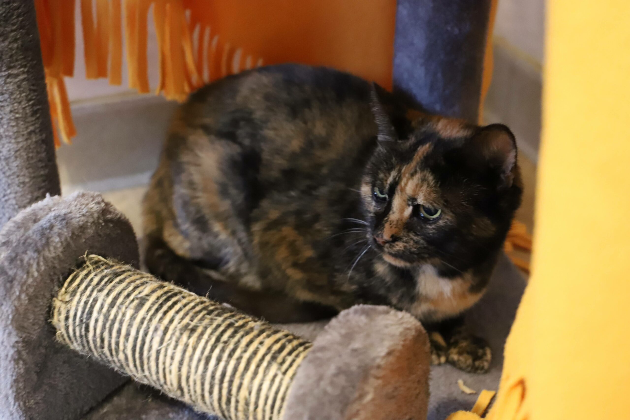Night est arrivée au refuge après avoir été retiré d'un bungalow où 27 chats vivaient. C'est une minette qui n'est pas sociale, ses adoptants devront être patients avec elle.